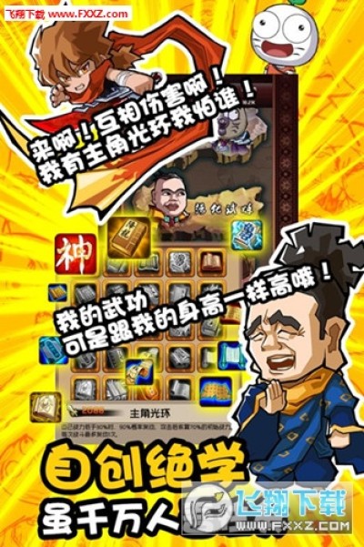 暴走群侠传手游最新安卓版是一款根据同名人气漫画改编而来的动作冒险角色扮演手游,暴走群侠传手游最新安卓版游戏中玩家不仅可以选择自己喜欢的漫画人物,升级强化他的格斗技能和武器装备,跟随着他来到有着唯美清新的充满未知危险却又能让人捧腹大笑的暴漫江湖中展开属于你的江湖浪迹之旅!