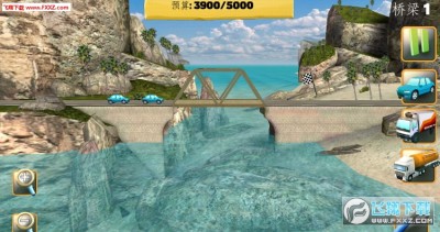 游戏进入之后,一系列的操作指南,很快的就可以开始游戏了。首先看到的是一个断裂的桥,此时需要用木头搭建好,不能超过预算。建好之后,点击右下角的按钮开始模拟测试桥的质量。可以开小车,也可以通大卡车,右下角是放大缩小,在视觉上的人性化设计。