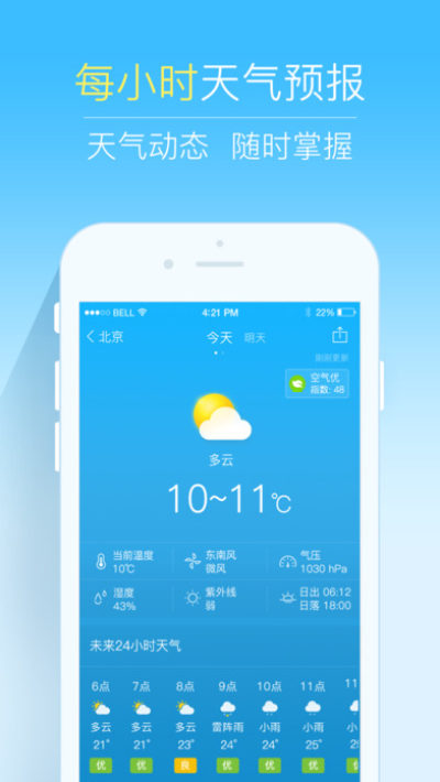 3、48小时天气预报,随时掌握小时动态,短时外出有保障。