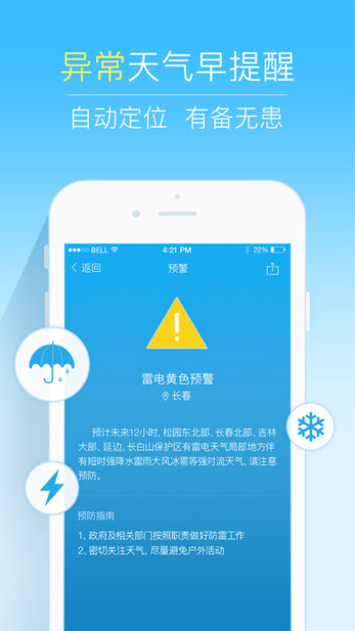 4、恶劣天气预报推送,提前防范异常、灾害天气,有备无患。
