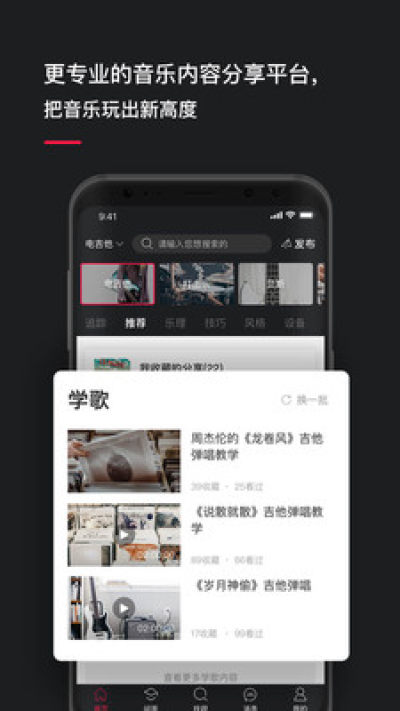 全新POST音乐是一款专业、有趣的音乐知识分享平台。App内拥有海量的音乐知识,全面覆盖十大领域:演唱、吉他、贝斯、尤克里里、打击乐、音乐制作、键盘、打击乐、音乐创作、电子乐。从不同的维度细分知识点:乐理、技巧、玩风格、找设备、学歌。