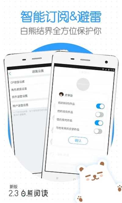 白熊阅读是由上海豆萌科技有限公司推出的一款二次元同人小说轻小说阅读创作APP,是国内最大的二次元文学平台。通过白熊阅读可以订阅阅读各类同人小说以及轻小说。用户也可以通过网页端和手机端同步创作原创小说。在App上可以实现订阅喜欢的cp、原作及题材口味,也可以一键屏蔽不感兴趣的内容,方便读者的个性化阅读体验。