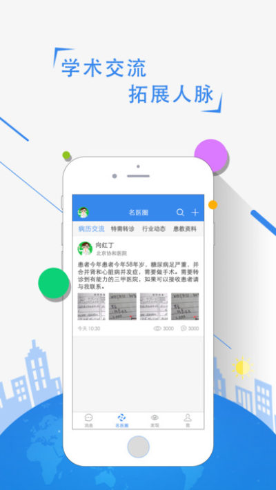 1.名医圈:与专家们一起进行学术经验交流,拓展医疗人脉。