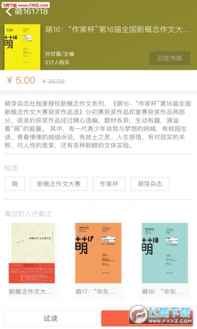 新概念作文集全国新概念作文大赛获奖作品选,萌,代表一种年轻的能量!在完整还原纸书内容基础上,优化阅读体验,将电子书尽可能地保留纸书的原汁原味,提供另一种移动端阅读的方式。