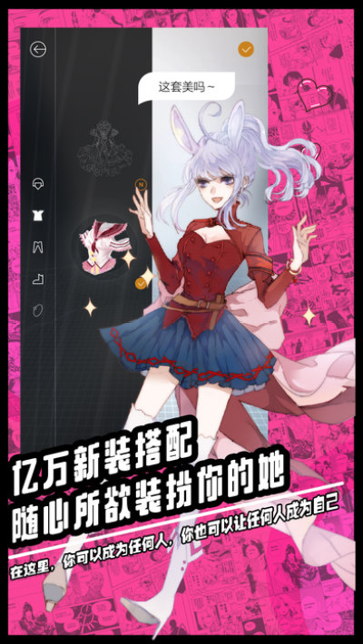发型、衣着、武器、装备……想让你的虚拟伴侣变身为人气漫画中的男/女主角?点击你想要的素材,随意搭配,二次元世界中的时尚风潮由你领衔!