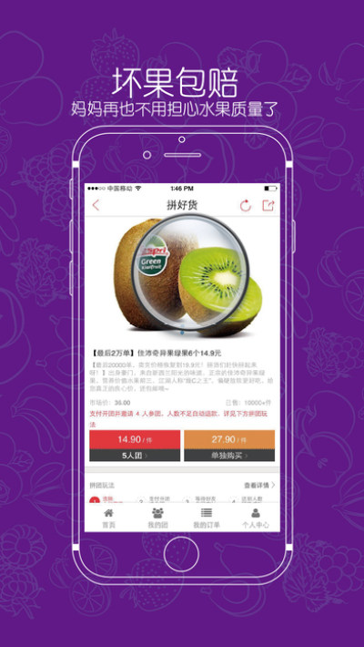 -坏果包赔:拼好货拼团商城力求每一份水果都是美果优鲜。如有坏果,立即包赔,完善的售后服务,力求第一时间让您满意。
