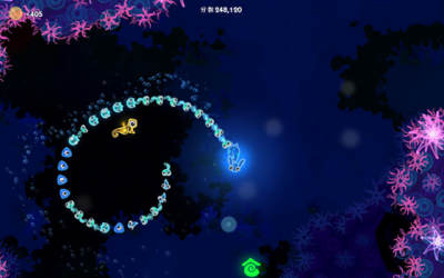 故事背景很简单——和朋友一起对抗邪恶势力,只是这次但故事的主角变成了海底的鱼儿们。队形有“铁链模式”和“轨道模式”两种,需要变换阵型来应对不同的情况。另外操作起来那种鱼儿游泳的节奏和感觉把握得很不错。