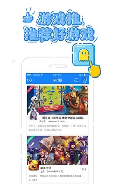 “游戏推”是由97973移动研发小组与游戏业界资深小编联合倾心打造的一款服务于游戏玩家的互动娱乐平台。在这里,您可以找到游戏界的资深玩家明星大神、发现最新游戏资讯、最全的游戏攻略和专辑。做手游媒体中最有个性的互动娱乐平台。