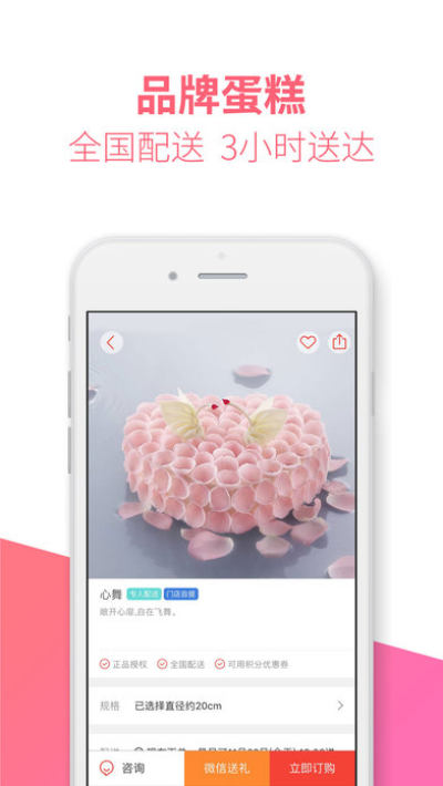 1.超过400+城市开通订购服务,黑天鹅、好利来、21cake、诺心、元祖等上百个品牌100%正品;