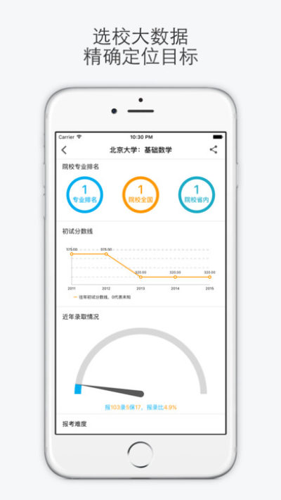 - 收录1000+招生单位、50000+专业条目、20万+报考分数信息,打造考研选校第一大数据库