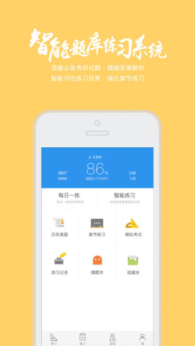 拒绝盲目的题海战术,我们精选优质试题,提供官方答案解析;智能练习评估系统,实时告知你的知识薄弱点,助你有针对性的复习。