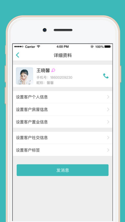 4、好友信息管理:个人信息、房屋信息、社交信息、标签(支持默认标签);