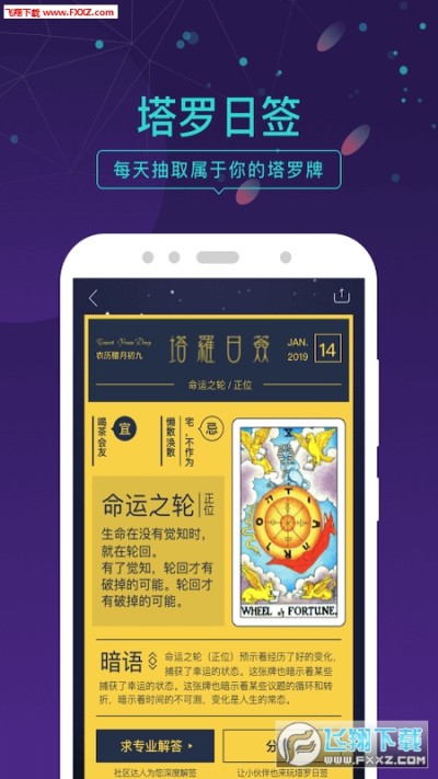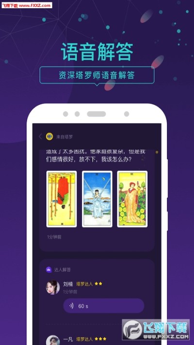 从大阿尔卡那牌22张,小阿尔卡那牌56张从中抽取3张,获得塔罗指引。我们提供专业认证的塔罗达人帮您分析具体牌意,获得至少2条语音解答。如果您感觉达人的回答比较满意,可以跟相关达人在线私密语音交流。