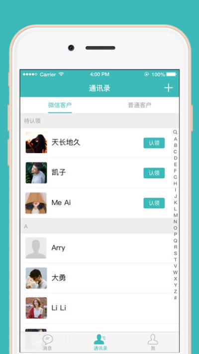2.通讯录:微信客户、普通客户;