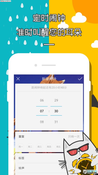 满满二次元风格的闹钟,包含天气、倒计时、计时器、闹铃等功能