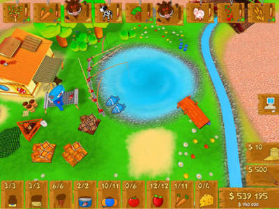 农场2是2011年出品的一款休闲模拟小游戏。这里有着有趣的动物和可爱的植物需要你的照顾!帮助生病的叔叔打理农场,并发展你们的生意。种植新的农作物,升级设备,并为你的农场引进新的动物!非常好玩的模拟小游戏。