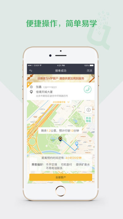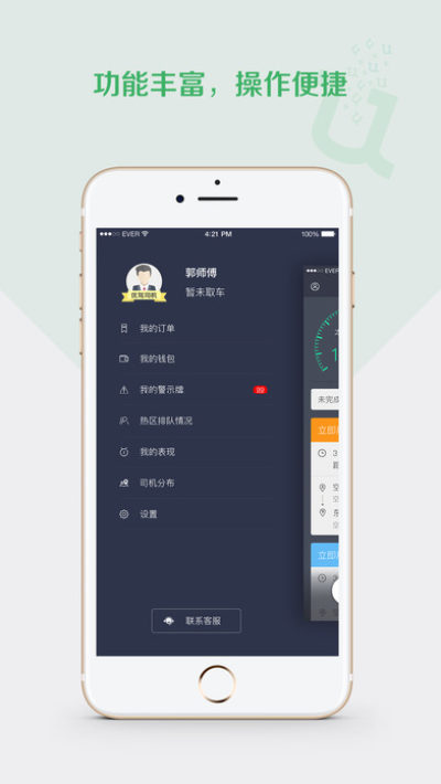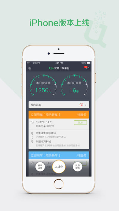 方便的上下线操控,人性化的接单设置,高效的预测界面。