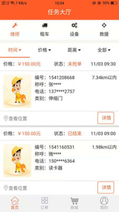 技师们能够根据自身技能并合理安排维修或施工时间,技师可根据平台自带定位功能,找到客户位置并上门提供安装或维修服务,大大节省上门费用,维修技师各项指标(服务评分、客户评价、口碑等)排名信息透明,客户亦可随机下单也可指派技师,维修技师排名评价一目了然,客户通过平台支付维修费用,7天的保障申诉期,可申诉可返修,确保维修从技术、到服务得到有力的保障。此外为了客户和技师们能够更有效的获取更多的与工程、维修的相关信息,平台系统特意免费提供长短途货运、物流信息、车辆道路救援、工程机械租赁信息、以及相关产品配件商城和项目招标信息。