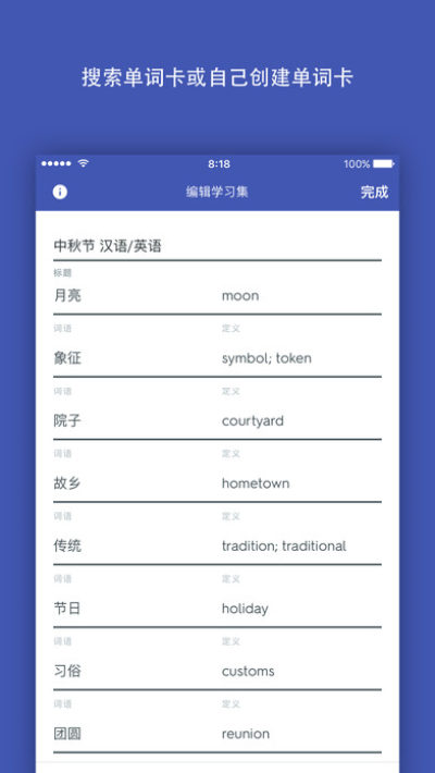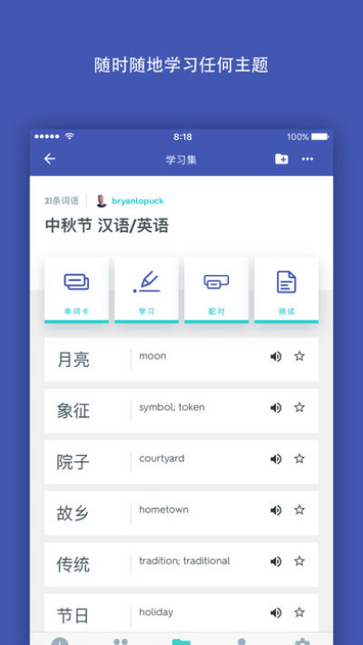 通过领先的教育应用程序掌握课程内容!你可以创建自己的单词卡,也可以搜索Quizlet其他用户创建的数百万海量单词卡,各种主题应有尽有。强大的互动学习工具让你更加自信: