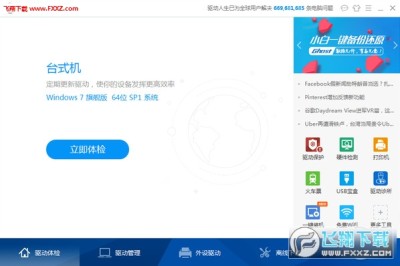 驱动人生v7.0的主界面有了新的变化,在导航栏多了个离线下载按钮,在右侧栏则多了个资讯内容滚动显示区域,该区域将为用户提供当前热门资讯和有效电脑故障解决方案,协助用户解决电脑问题。此外,主界面采用下导航栏显示。整体界面变得更整洁、更美观、更简单粗暴。