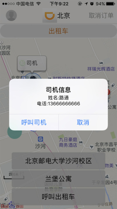 可实时联系司机,实时查看司机位置。