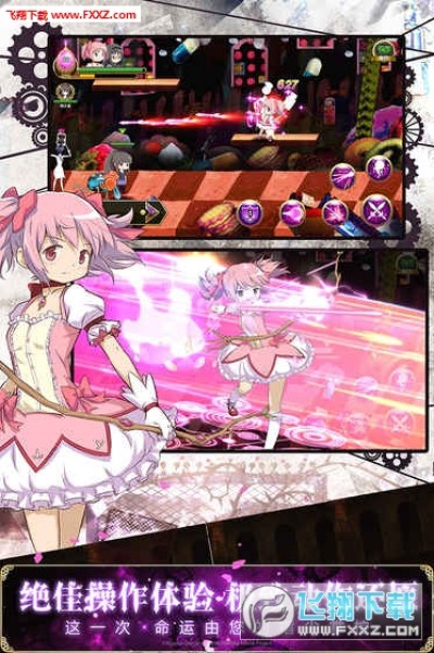 结界战、救援战,轮回的战场,魔女的世界......各个副本,等你来战!鹿目圆的蔷薇花开弓、晓美焰的金属盾牌和RPG-7、美树沙耶香的刀等等,游戏完美还原了每位魔法少女战斗动作,玩家指尖操控魔法少女,获得非凡的战斗快感。
