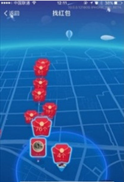 4、找红包时,可以看到一张地图,显示用户周边500米的红包。用户到该位置后,需要用摄像头对准藏红包的物体,即可找到红包。