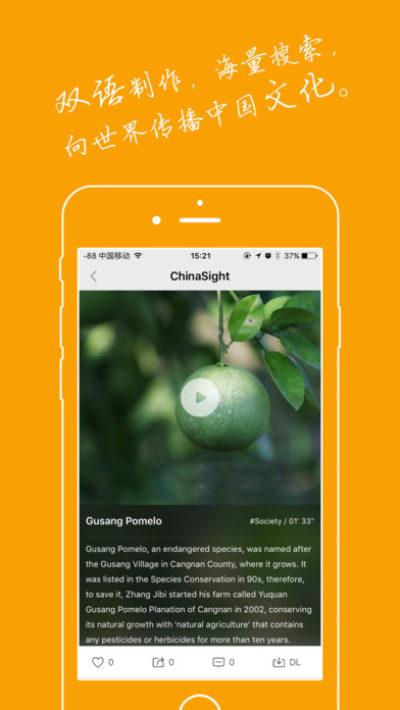 中国文化 走出去 是当今社会的大势所趋,中国视记ChinaSight平台所传播的内容,从宏观历史、思想、教育、社会,到具有中华传统特色的地域风光、饮食文化、民族风俗、艺术样式等,对国外用户都有着天然的吸引力