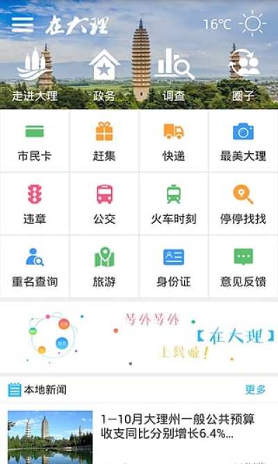 在大理是大理市政府发布的智慧城市手机们户app。该应用“接地气,惠民生”。市民使用在大理可充分享受移动互联网时代社交、娱乐、政务、医疗等多项服务,让市民生活,锦上添花。