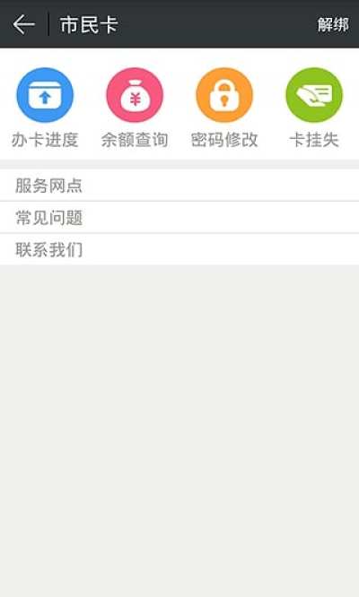 这是提供市民卡服务的平台,是市民卡业务应用的延升。市民可以通过此平台实现卡绑定/解绑,办卡进度查询,卡余额查询,服务密码修改,服务网点、常见问题、办事/使用/充值指南查看等日常业务。
