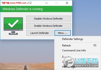 点击「Launch Defender」按钮可以快速地打开 Windows Defender,而点击「Menu」下的「Defender Settings」菜单则可以打开 Windows 10 中 Windows Defender 的设置界面。