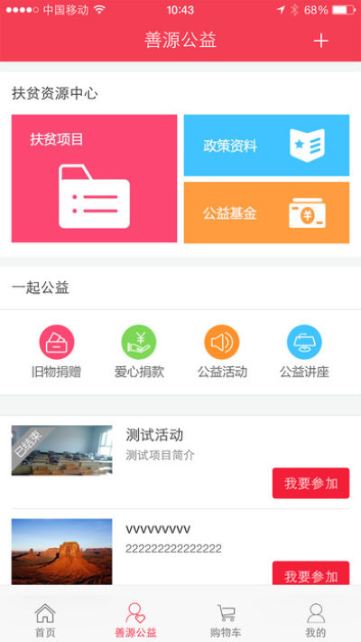 - 增加了善源公益,可以在这里便捷的参与各类公益活动