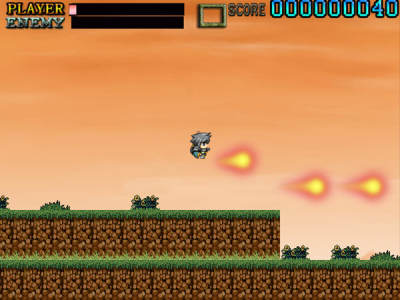 横版动作射击游戏,一个人制作完成,游戏的音效音乐有用到:松鼠大战,腐尸之屋,梦幻之星,翼人,MD上的伊苏3.