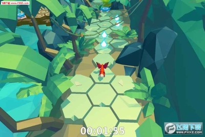 在游戏里,主角小狐狸会在一些由六边形组成格子地形、有着固定流程的关卡里进行跑酷,而这些地形会有诸多断层或者分支路线,且还有各种曲曲折折的路线设计,使得玩家在控制那只会不断奔跑的小狐狸时变得更难操控。