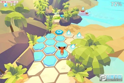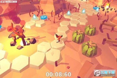 《小狐狸》中玩家要以上帝视角俯瞰地图。卡通风格的3D背景看起来非常舒适,主角小狐狸则要在地图上的六边形网格上进行奔跑前进。小狐狸的奔跑是自动进行的,玩家则要观察地图控制小狐狸进行左右转向和跳跃动作,避开路上的障碍物并收集水晶,寻找关卡的目的地。