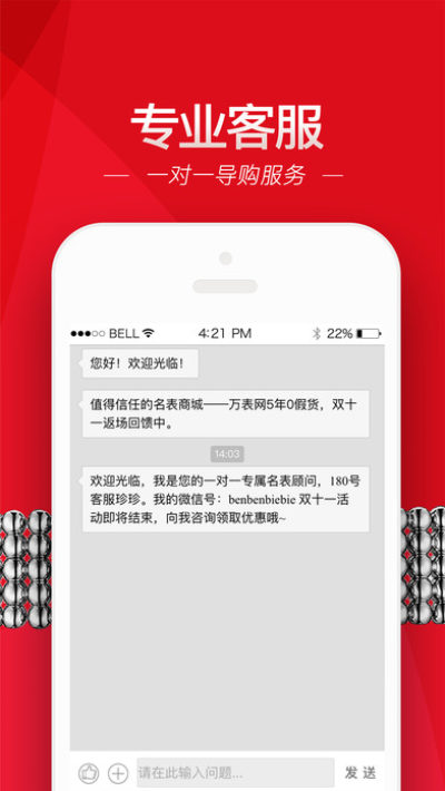 【终身服务】300名专业腕表顾问,线上一对一恭候,根据你的个性需求,给你可靠的买表建议。