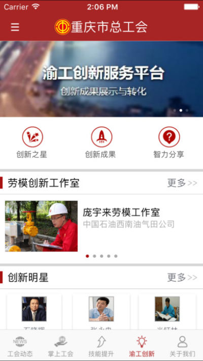 尤为职工称道的是“渝工创新”和“技能提升”两大模块,企业和职工可随时进行技术与技能展示、供需对接、智力分享和成果转化,并以科技店铺的方式实现技术成果的在线采购,助推科技成果转化与科技创新。