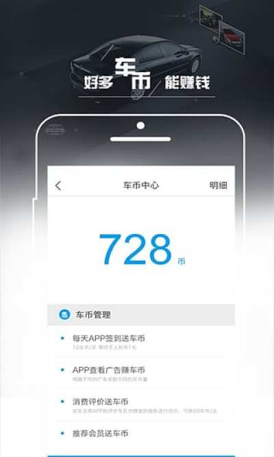注册送200车币,每日签到送10车币,消费就有等额车币送,推荐会员送车币多种获取车币方式,用来在线兑换任意产品和服务,还可以操作提现赚钱啦!