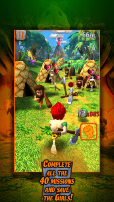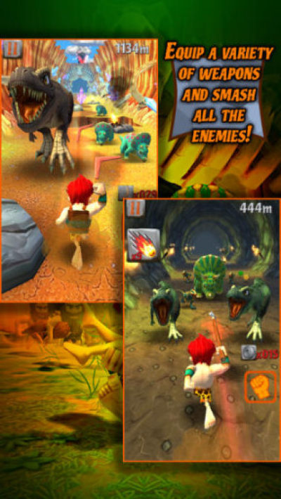 野蛮人跑酷Caveman Dino Rush手游安卓版游戏讲述的是哦,我的上帝!村里的姑娘们都被暴徒绑架的那些人!我们不能把他们留在他们手中,可怜的东西!出去的女孩失去了搜索和穿过丛林和峡谷居住着致命的史前原始的生命,可怕的恐龙一样可怕的霸王龙,面对流氓团伙的该死的人!装备盔甲,拿起你的珍贵的武器像飞镖、矛和斧头,面对危险毫不犹豫。使用武器狩猎穴居人和动物!在极度需要你总是可以指望两个古老的魔法物品总是在您的处置:Dino Crystal让你骑龙,霸王龙等许多恐龙或充灭你的敌人毫不怜悯,或触发器的流星雨消灭所有的恐龙在你身边!