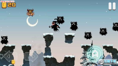 游戏采用了固定按键控制的方法,玩家们点击屏幕左下角的两个按钮可以控制住家左右走位,右下角则有一个“A”按钮可以控制主角跳跃,玩家们就靠这三个按钮来进行挑战了。游戏的挑战过程很简单,所以操作也无需太过麻烦,不然反而显得不伦不类了,本作的操作按钮位置和大小都比较合适,控制起来很灵活精准,不会造成一些不必要的失误状况。