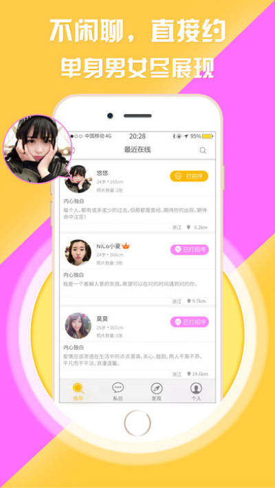 陌爱神器手机版app是一个能够让你更快解决单身问题的应用软件,需要陌爱神器软件的用户快来体验一下这个有趣的交友软件试试吧,让你能够有人陪伴在你身旁,还有不闲聊直接约的模式,加油更加直接。