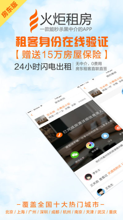 火炬租房是真正的互联网无中介租房,每天北京、上海、广州、深圳、成都、杭州、南京、天津、武汉、重庆全国十大城市有上万的高素质租客通过火炬租房找房租房,房东房客直联直签,没有任何中介费!更提供电话号码隐私保护,线上安全支付等杜绝骚扰,安全交易等租房全过程的保险保障。无论您是住宅业主,公寓房东,住宅转租,找租客,找室友,整租,合租,分租,转租,短租。