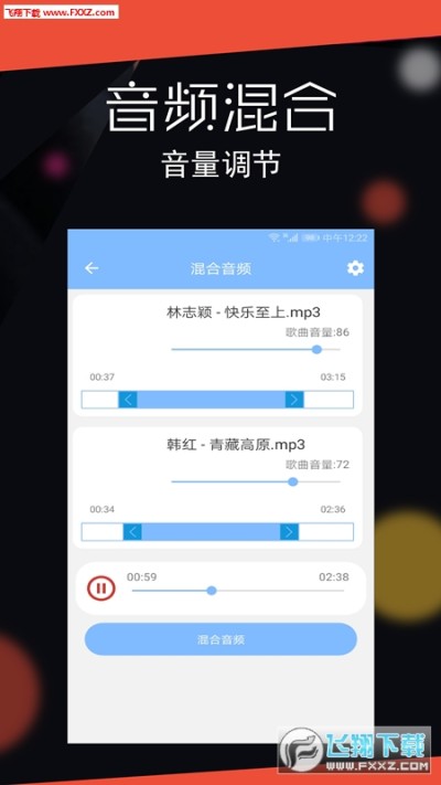 1、音频混合:可将多种格式的音频音乐进行混合;