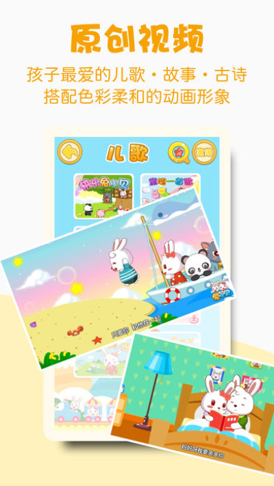 3.精选儿歌:听儿歌,看动画,细化年龄分类,免费离线下载。兔小贝为您精选宝宝最爱的热门儿歌: 两只老虎、小毛驴、蜗牛和黄鹂鸟、ABC字母歌、拔萝卜等⋯