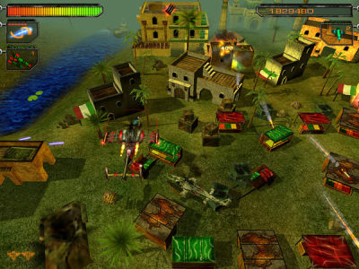 游戏中的武器超过100种,如冶炼车、重型直升机、潜水艇、驱逐舰、 航空母舰、高速快艇。任务场景有水上、陆地、高山、人口密集区。支持1人或2人游戏模式。