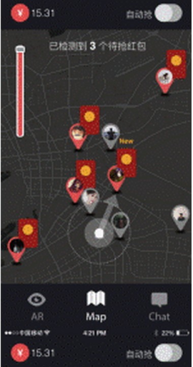 AR红包: Tempo同样也支持AR红包功能。进入AR菜单,扫描当前视野场景,同样会显示好友1小时内发过的红包。与此同时,系统会贴心地提示正在包红包的好友,提醒用户做好抢红包的准备。