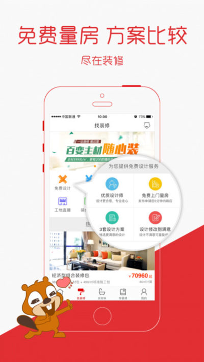 1.【一站家装解决方案】专业设计师免费设计,个性化装修材料包,一线材料厂商直供。首创480道施工工序,齐家装修管家,持证上岗,24小时贴心服务。工地直播,随时随地在线查看装修情况。省钱省心有保障!