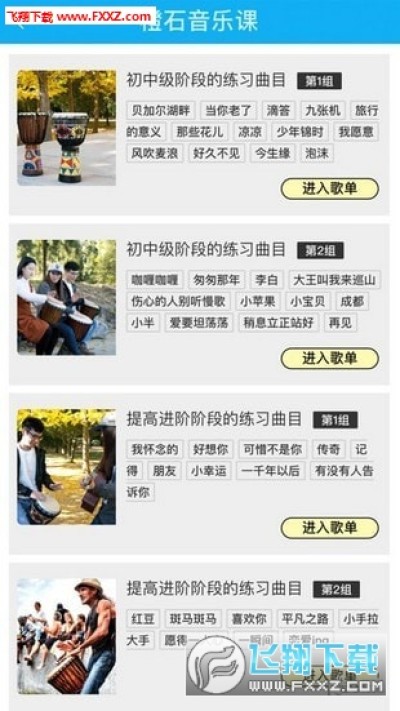 橙石音乐课提供非洲鼓、箱鼓、尤克里里、吉他等相关课程。课程从基础开始学起到提高进阶。同时提供更多不断更新的歌曲、乐曲的学习曲库。