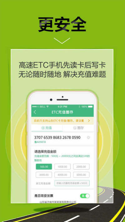 通过下载山东高速指定官方APP“高速ETC”或关注“信联卡ETC”微信服务号即可实现对ETC卡的充值、写卡。山东高速ETC充值实现多元化,用户除了能在ETC客服网点、合作银行充值外,还可通过智能手机完成对ETC卡进行的充值、写卡。