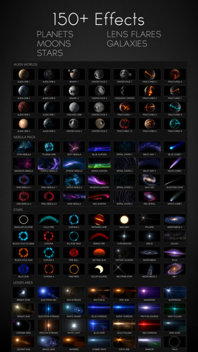 2.内置空间物体、如行星、卫星、星系素材供使用者进行合成操作